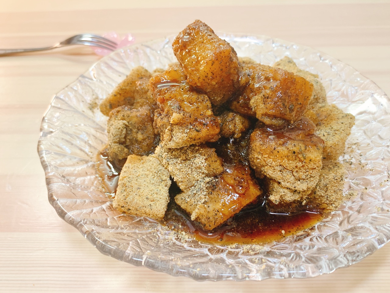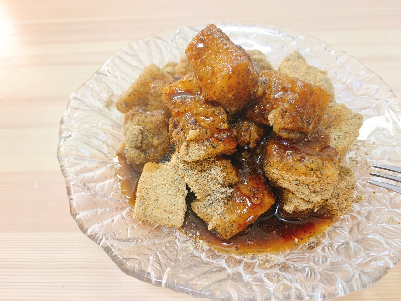 豆腐で作るもちもちわらび餅です。
