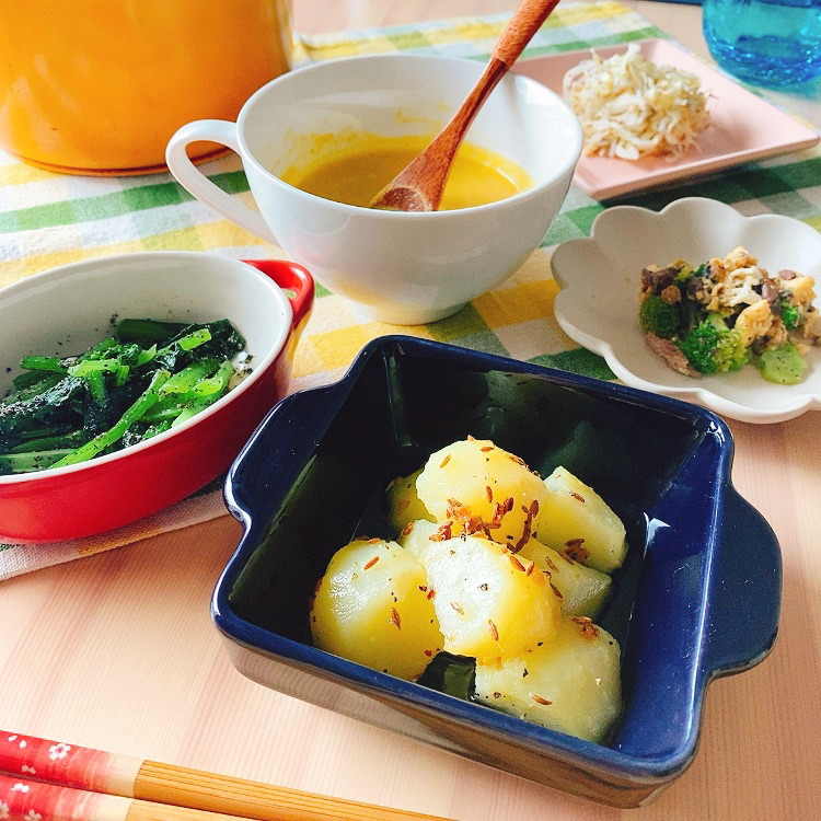 ホクホクしたじゃがいもに、クミンのスパイシーな風味がプラスされやみつきな逸品に。
