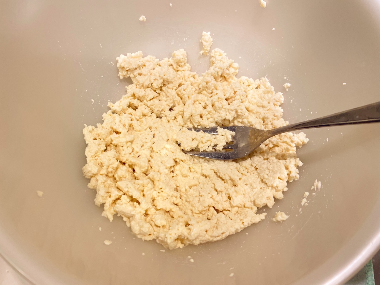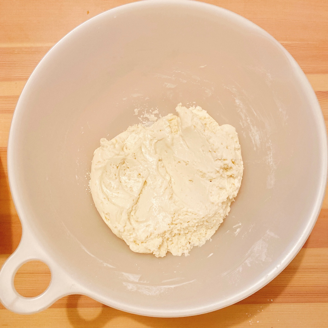 ①○をボウルに合わせ、分離がなくなるまでよく混ぜる。