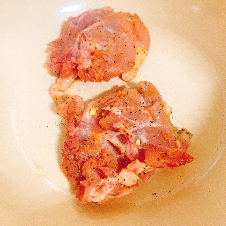 味付けは今回は塩胡椒したお肉に仕上げでバルサミコ酢をかけていますが、