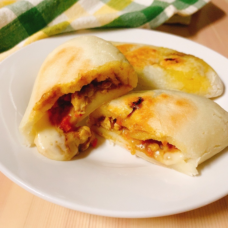 もちもちのナンで、たっぷりのカレーとチーズをサンドしました。