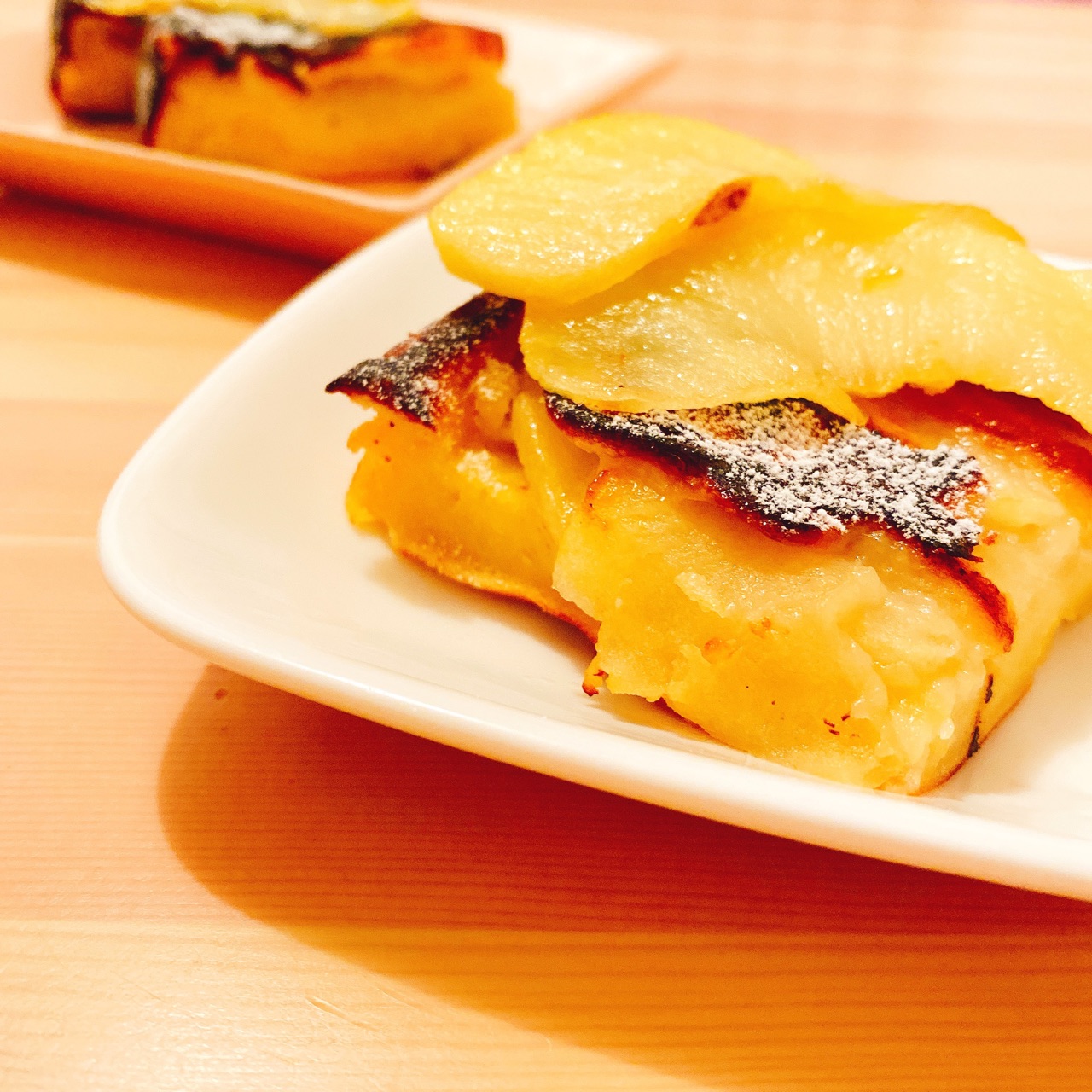 ⑤お好みの型にりんごを並べ、その上から④を流し込む。