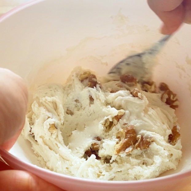 ②☆を加え混ぜ合わせ、ポロポロになってきたら練り混ぜひとまとめにする。