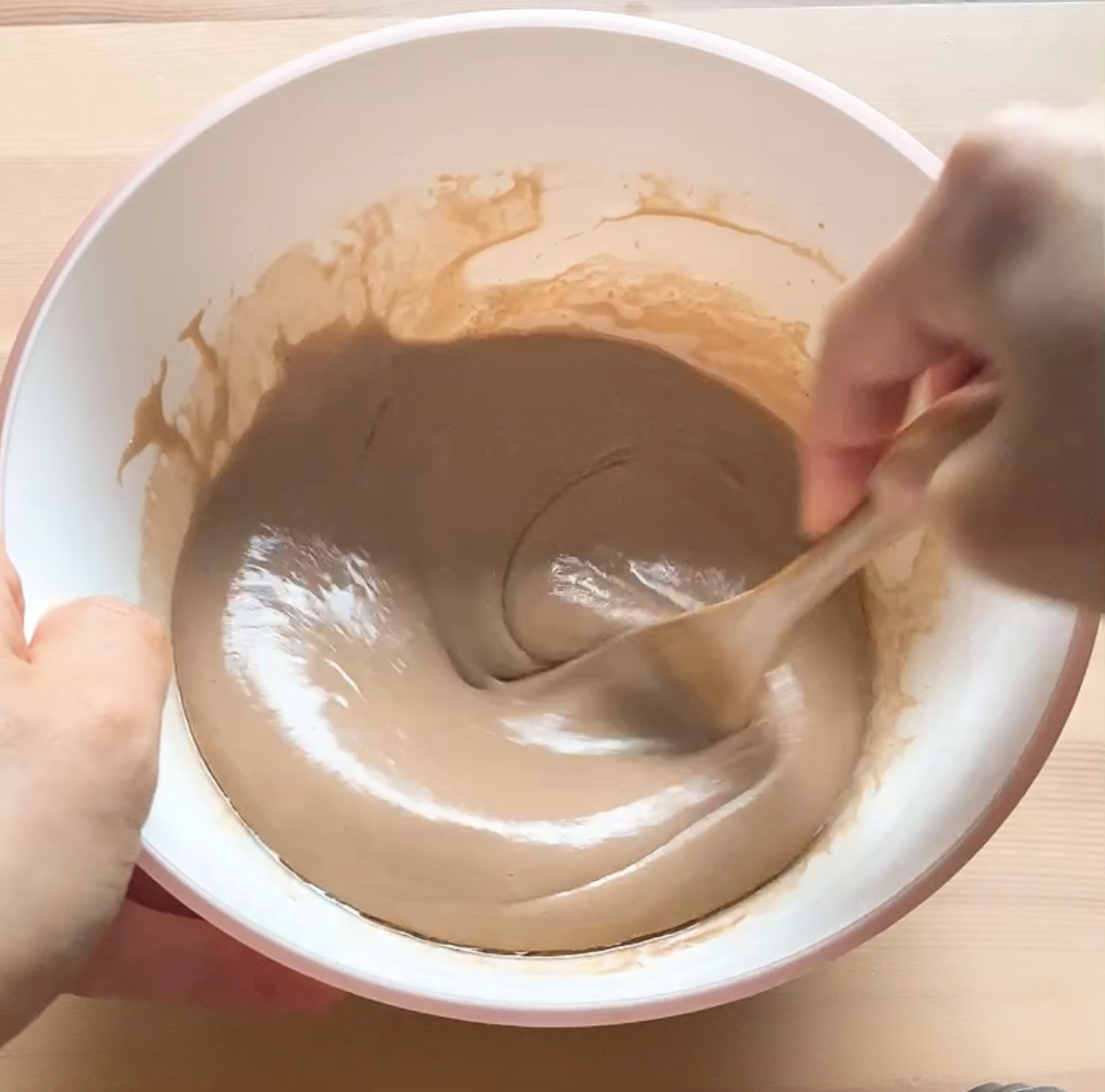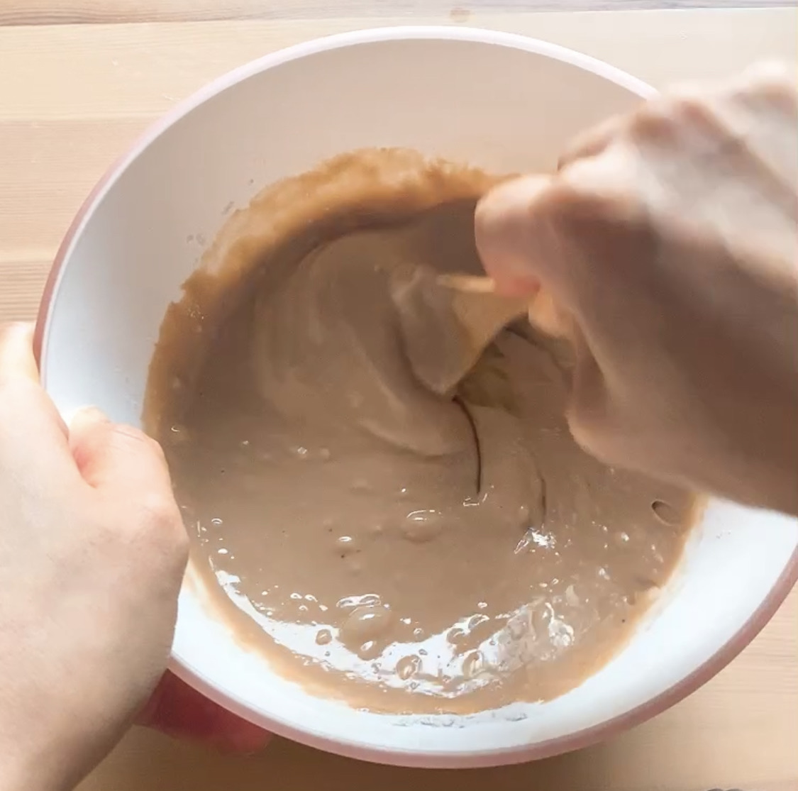 ③たまごを割り入れ滑らかになるまでよく混ぜる。